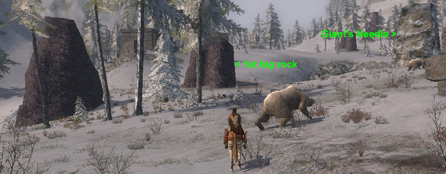 I always forget how to get to him between characters. This path starts just south of the Giant’s Needle at the 1st big rock from it.